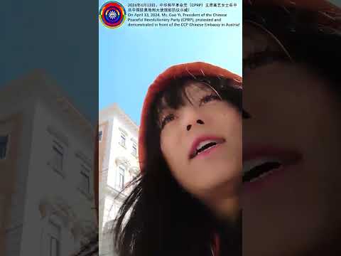 高艺主席女士在共中国驻奥地利大使馆门前进行抗议示威,高艺女士要求共中国驻奥地利大使馆在3秒钟之内出来接收高艺主席的抗议信,抗议信一部分内容是要求中国共产党CCP向中华和平革命党(CPRP)投降!2024年4月13日,中华和平革命党(CPRP), #china #vienna #austrian