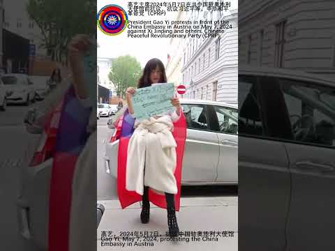高艺要求独裁者习近平停止伤害跨性别女性,高艺主席身披真正的中国国旗(中华民国国旗)抗议共伪中国驻奥地利大使馆,中华和平革命党(CPRP)2024年5月7日