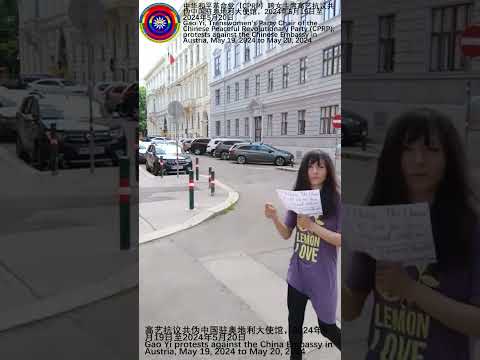 高艺抗议中共中国驻奥地利大使馆,要求中共独裁者习近平下台,紫色衣服,中华和平革命党 Chinese Peaceful Revolutionary Party(CPRP),2024年5月,紫色衣服,中午 https://youtube.com/shorts/Cx8X5g9F908?feature=share