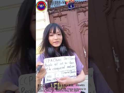 Gao Yi protests against the Chinese Embassy in Austria (doorway 2), short video, demanding the CCP to step down, May 2024, purple dress. Chinese Peaceful Revolutionary Party (CPRP). https://youtube.com/shorts/axZdmmm9xxU?feature=share