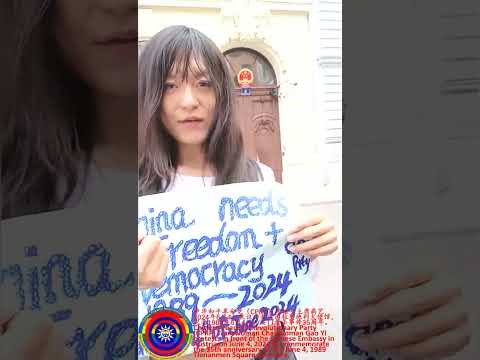 高艺,中华和平革命党(CPRP)跨娘女主席在中共中国驻奥地利大使馆前抗议,同时纪念1989年6月4日天安门屠杀35周年,视频b2,Chinese Peaceful Revolutionary Party (CPRP) https://youtube.com/shorts/YI73JKfCIT8?feature=share