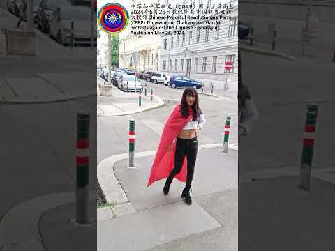 Gao Yi, transsexuelle weibliche Vorsitzende der Chinesischen Partei der Friedlichen Revolution (CPRP), protestiert am 26. Mai 2024 vor der chinesischen Botschaft in Österreich. a3 Video. https://youtu.be/eliJXM_Tb2U